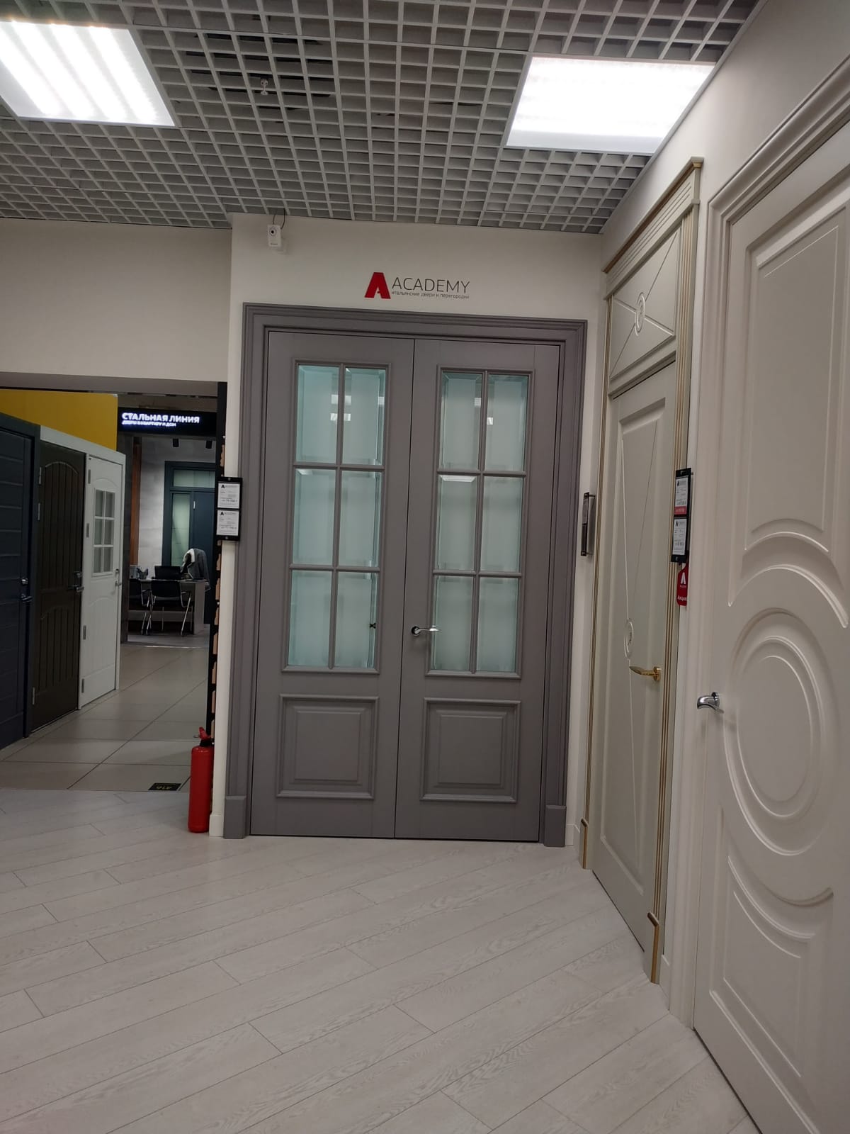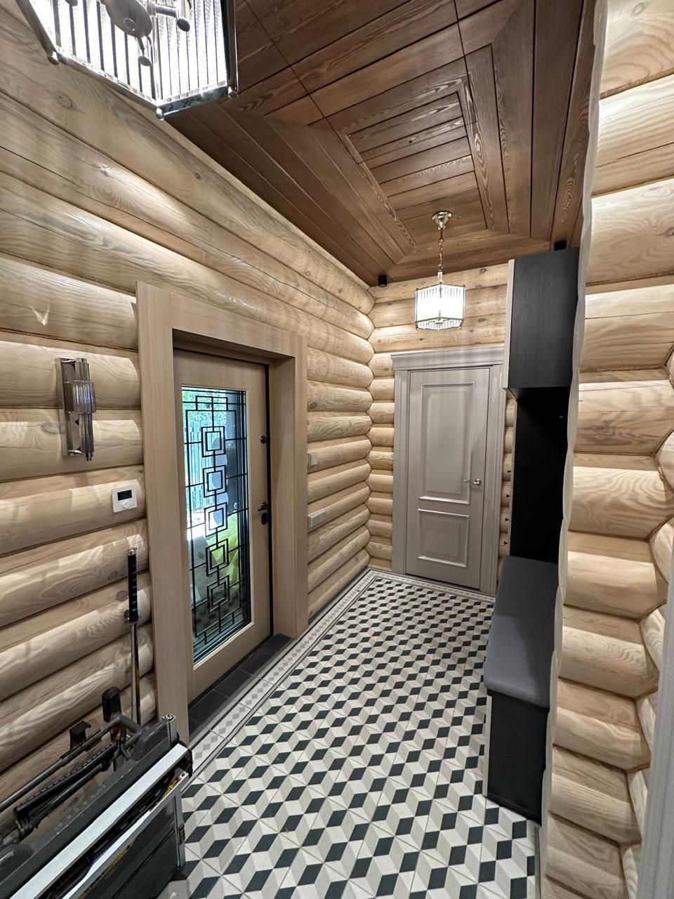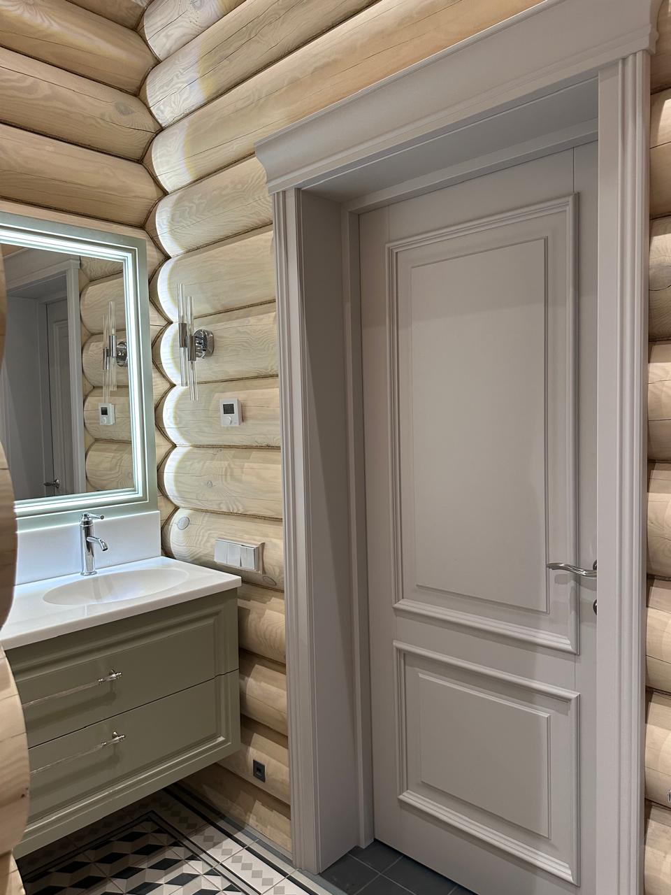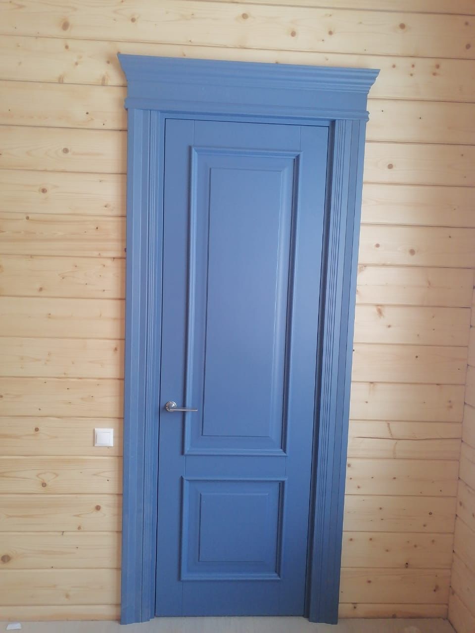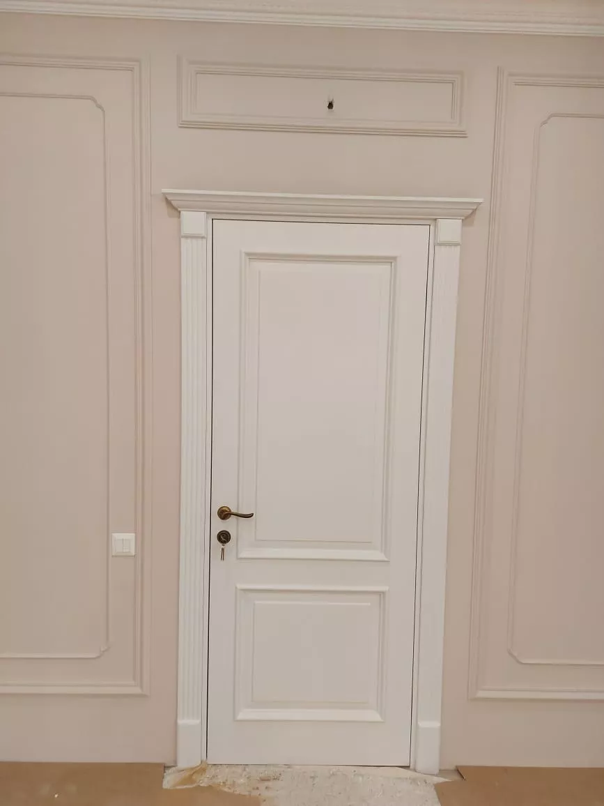 Полотно тамбуратное из инженерного массива (МДФ + ламельный/листельный массив лиственных пород) толщиной 50 мм. с повышенной шумоизоляцией,окра шенное матовыми красками итальянского производства SIRCA с эффектом «soft touch» по шкале RAL с возможностью двусторонней окраски. Объемные филенки, стекла крепятся к полотну с помощью фигурных штапиков (багетов).