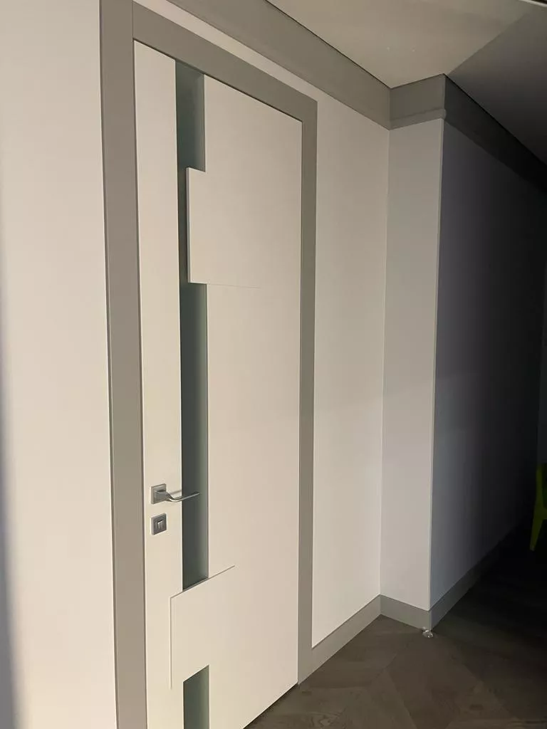 Уникальная, неповторимая линейка, выполняемая в гладкой эмали со шпонированными  элементами. Прямым линиям мы придали объем и разную текстуру, добавили света в виде стеклянных вставок. Коллекцию можно окрасить по палитрам RAL или NCS, а широкий размерный ряд позволит установить двери как в просторный лофт, так и в уютную небольшую студию.