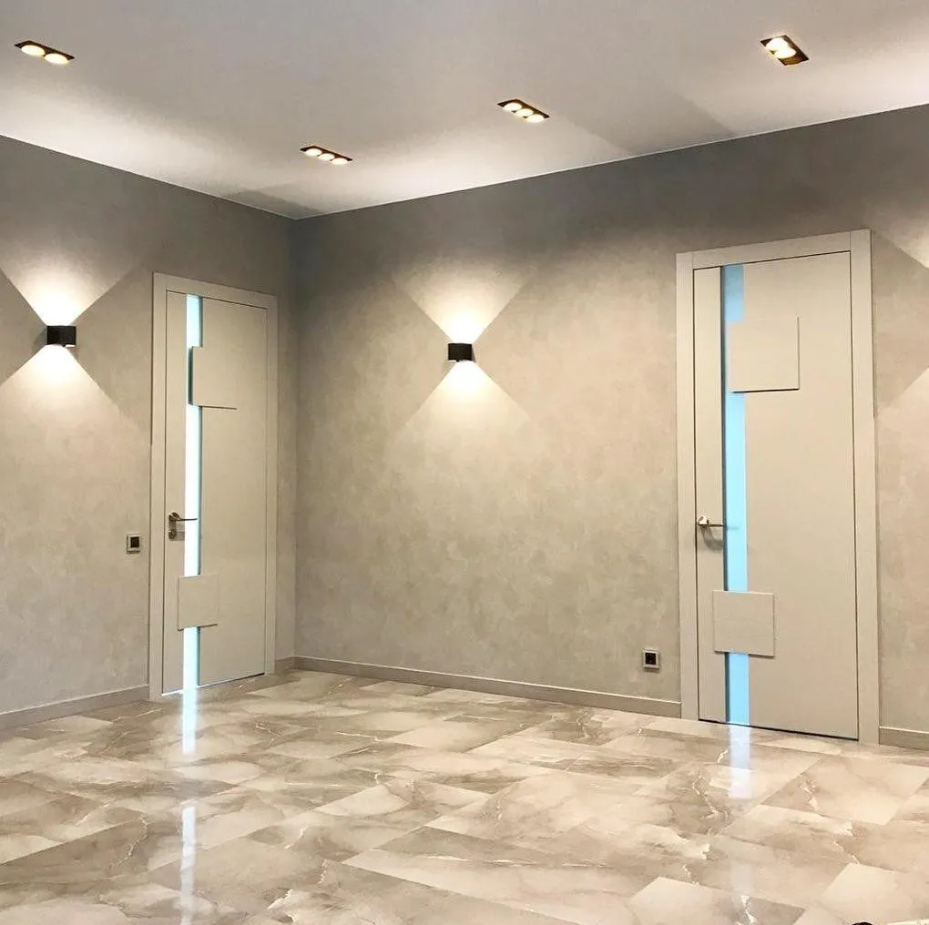 • Ламинированные двери: Покрыты пленкой, которая имитирует текстуру дерева, камня или полотна в покрытии краской.
