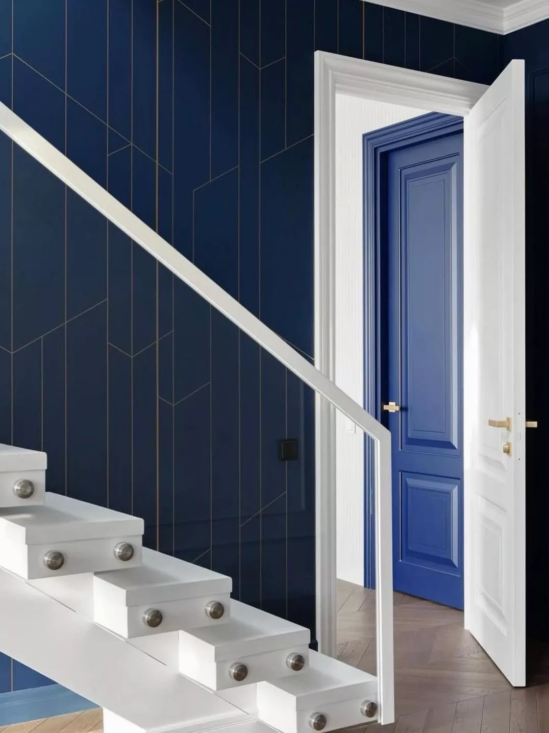 • Современный стиль: Глянцевые или матовые двери в минималистичном дизайне. Отсутствие лишних деталей и декора, прямые линии и четкие геометрические формы, яркие акценты или пастельные цвета.
