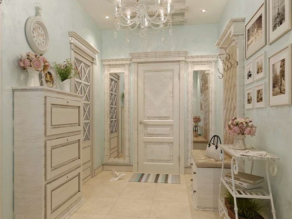 Как правило, деревенские направления тяготеют к натуральным древесным оттенкам, однако «героями» рассматриваемых интерьеров становятся лёгкие выбеленные расцветки. Современные производители приглашают купить деревянные двери в стиле Прованс, выполненные в серебристых, светло-бежевых, белоснежных, голубоватых, розоватых, нежных фисташковых тонах.