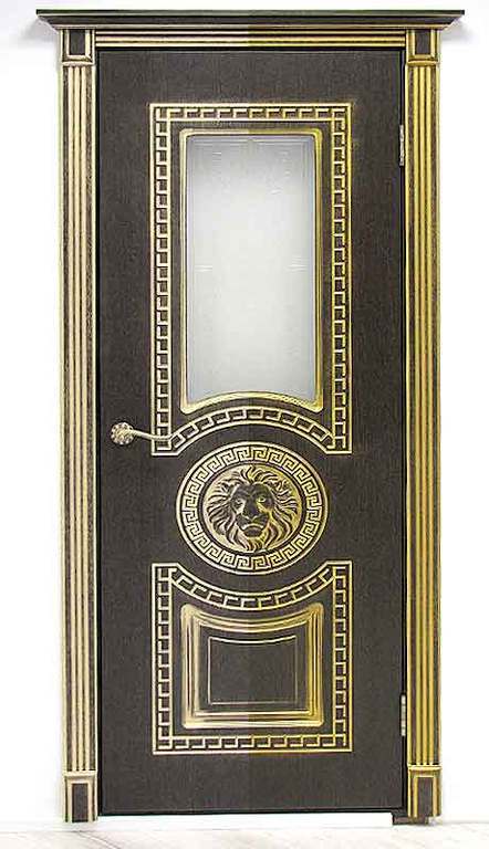 • узоры флористической и геральдической тематики, выполненные в цвете ценного металла. Оформленные вручную двери с отделкой под золото можно купить для самого взыскательного эксклюзивного интерьера;