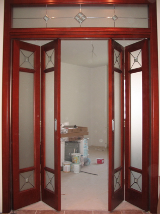 2. из стекла, которое применяется в каркасе из дерева или алюминия. Светопрозрачные модели смотрятся изысканно и эксклюзивно и замечательно совпадают с настроением классических и современных интерьеров. Дизайнеры создают истинные произведения искусства, используя в декорировании стекла витражные элементы, художественную роспись, кристаллы, разного рода аппликации и т. д.